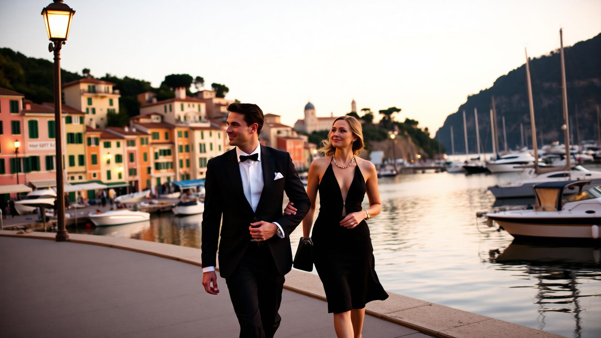 The slow morning on the most photographed square in Italy — pastel buildings curved around a handful of café tables, the harbour just beyond, the small church of San Martino above. An espresso, a slow watch as Portofino wakes.